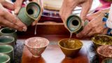 食事を楽しんでいます。